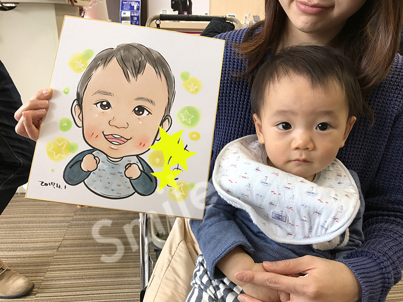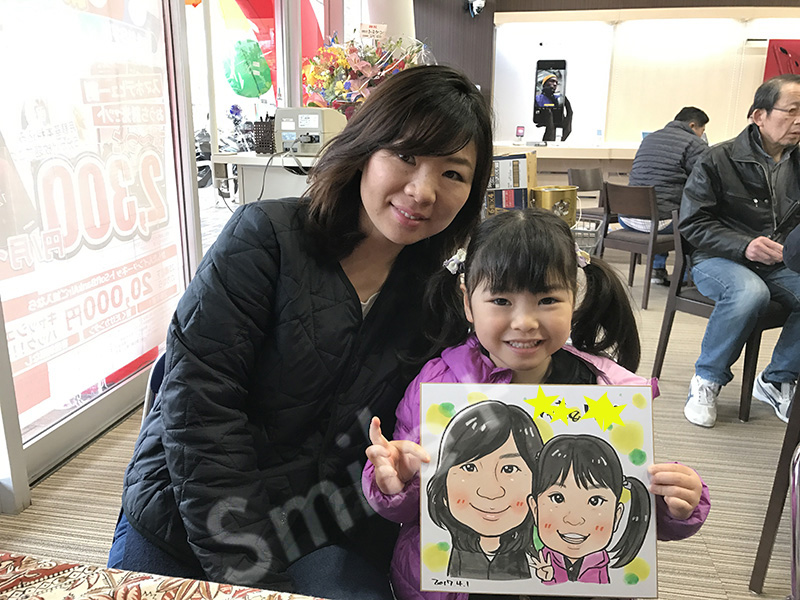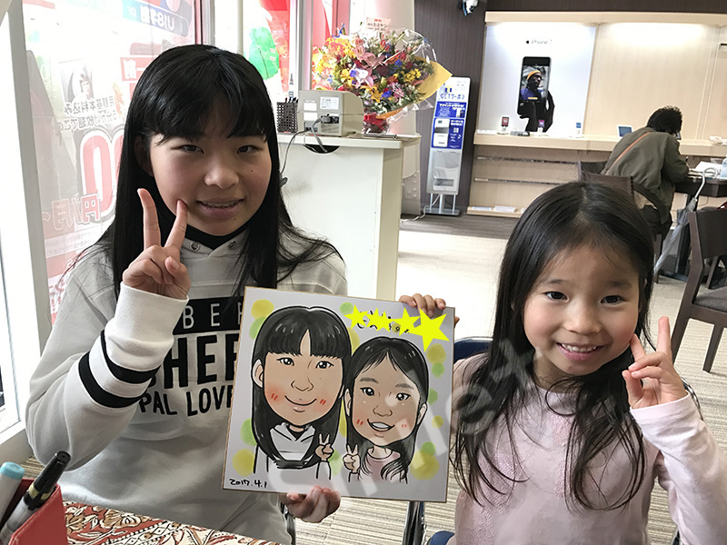 秋にもイベントをされたそうですがその時は似顔絵ではなく書き文字さんを呼ばれたそうで、今回似顔絵が復活。 秋のときにもお越しになった方に「秋のときに描いてもらおうと思ってたのにいなかったから今日来ました!」や 前描いてもらって!という方が何組もいて楽しみにしていただけていることを実感できてとてもうれしかったです!毎回ご好評いただいていてたくさんの方を描かせていただきました。【なつめ】